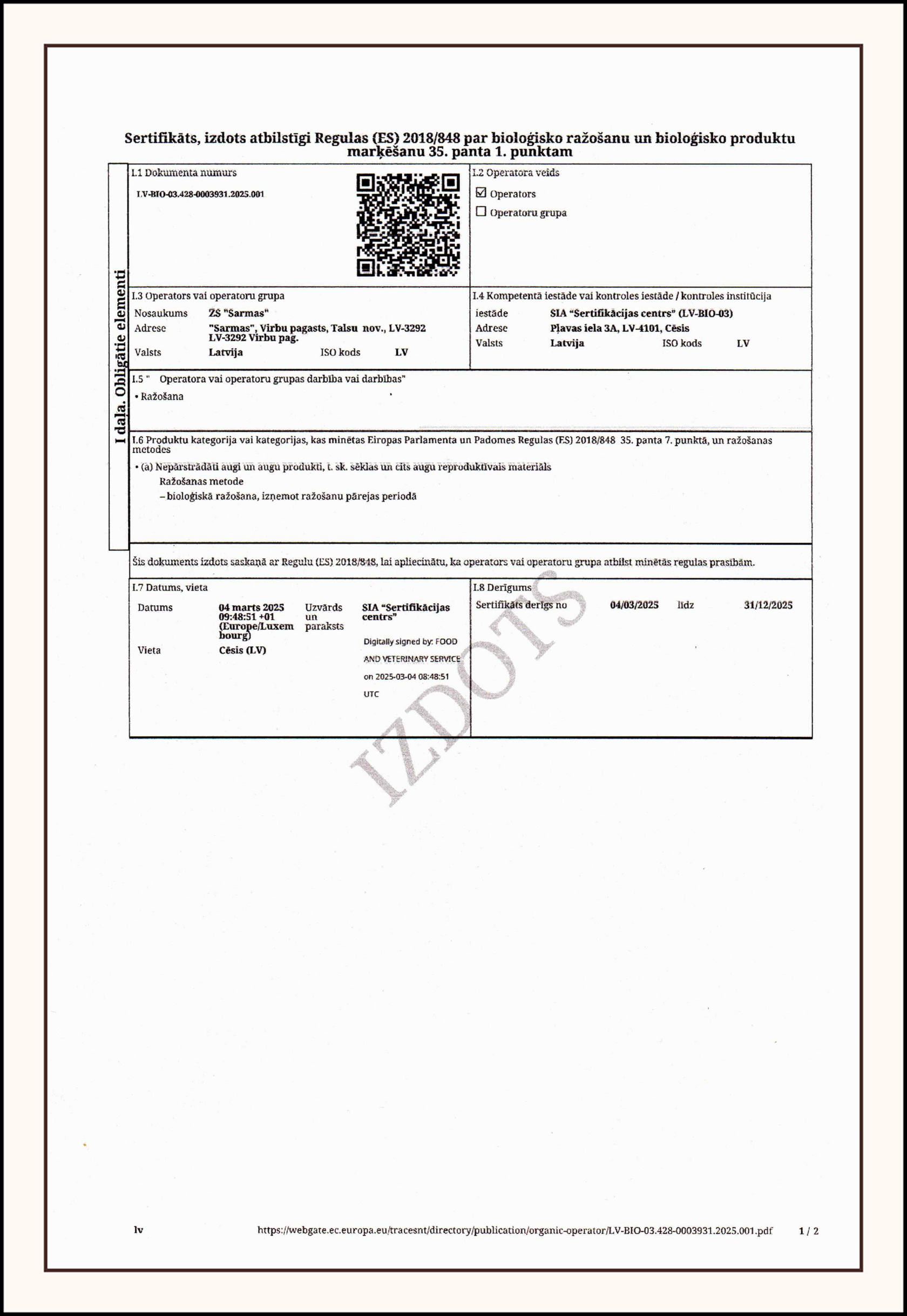 Certified Organic Poultry Feed (EU Reg. 2018/848)